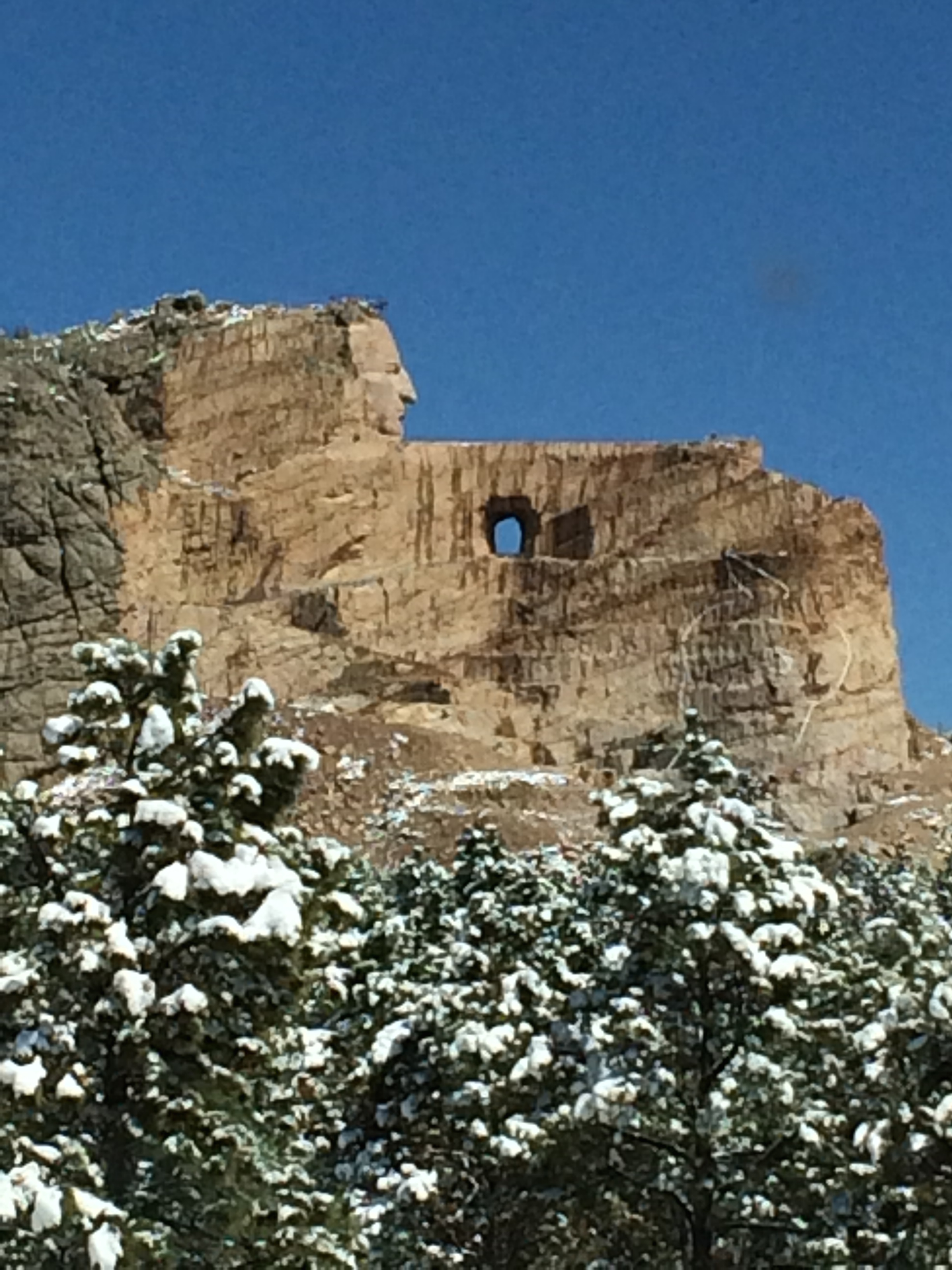 Friday September 12, it has stopped snowing, the sky is blue, the air is crisp at 34 degrees as we set out for the Black Hills, Mt Rushmore, and the Crazy Horse Memorial.
