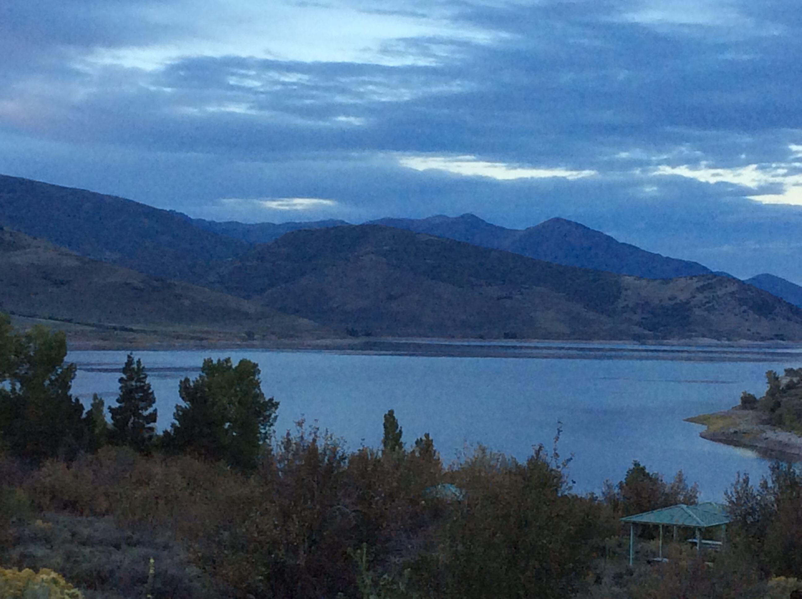 Driving the mountainous roads in that weather gets old quick.  I call it quits when I reach Deer Creek State Park, overlooking the Provo River but it looks more like a lake here.  It’s a small park with full hook ups, and showers.  I take advantage of all those amenities!