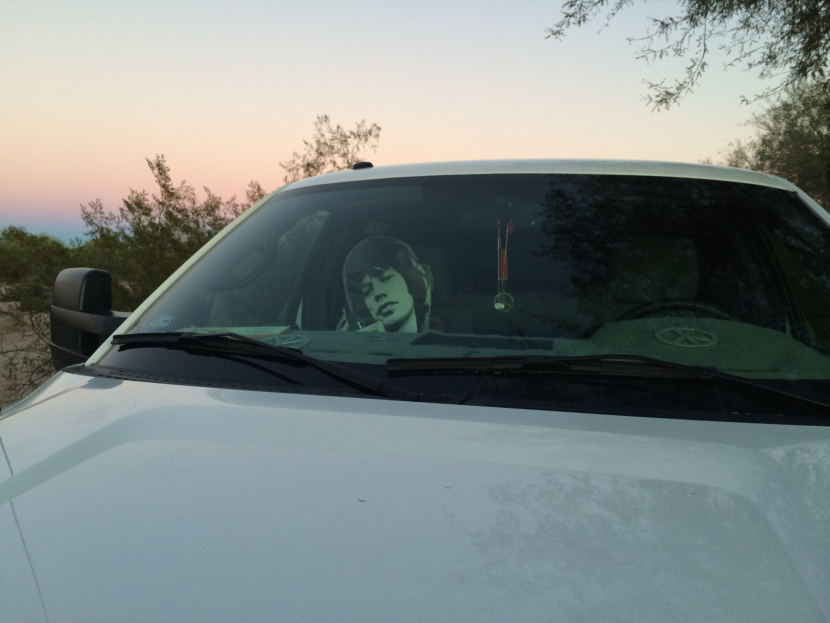 You may not know but I have a cardboard cutout life size bust of Mick Jagger in my passenger seat, with the seatbelt holding him in place.