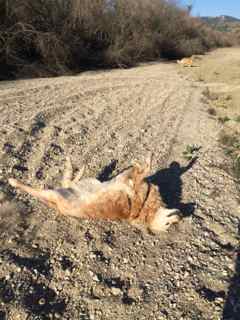 Joy and Shiloh frolicking in the dry river bed.