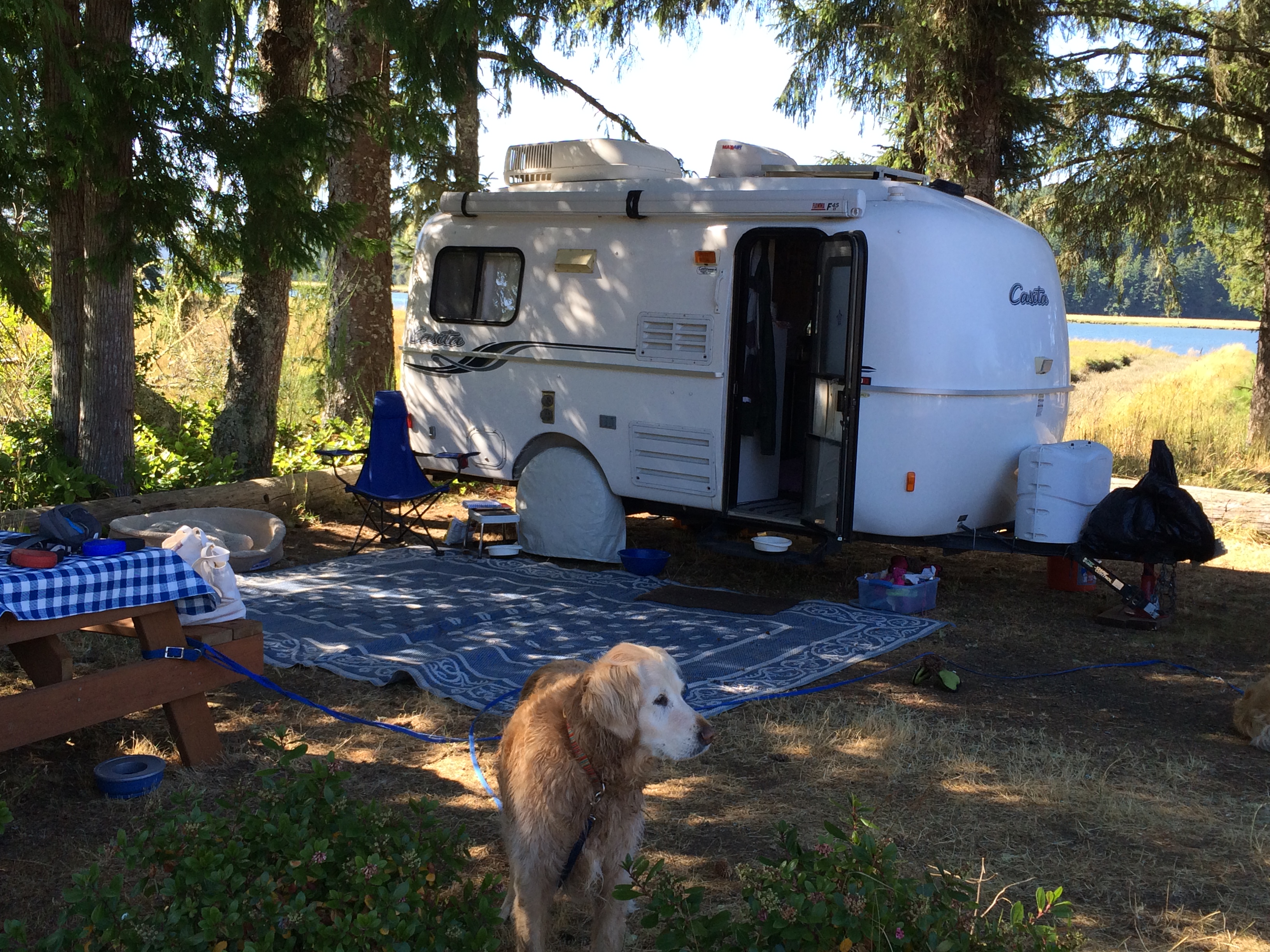 We say our good byes to the alpacas and head further north on 101. It’s a short drive to Waldport where we camp next. I choose the Chinook RV Park because they have a huge off-leash area next to the river for the dogs, and because when I talk to Becky on the phone she seems like a genuinely nice, dog loving person.