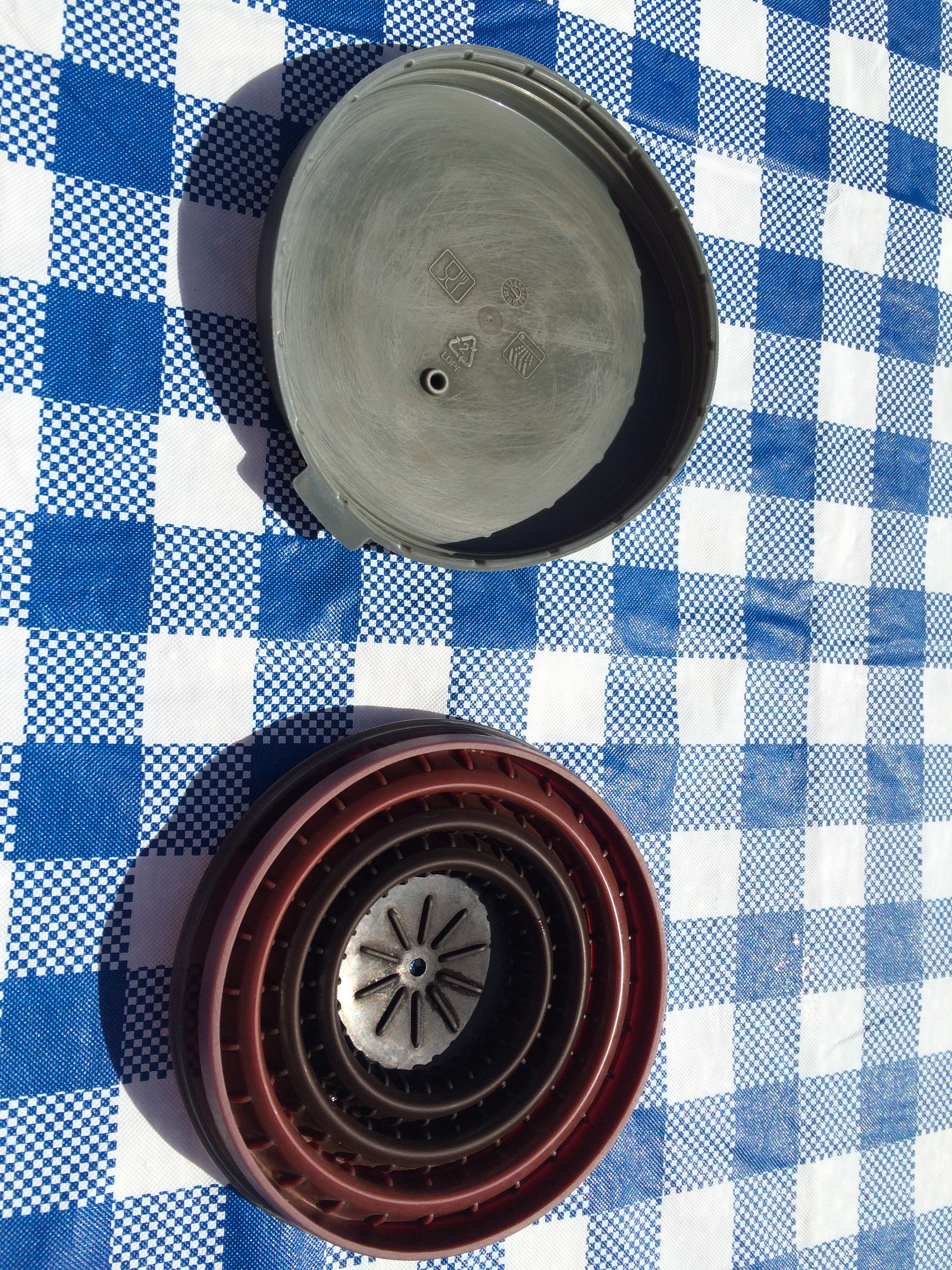 This gadget takes almost no room, because when I’m done with it, I can rinse it out and squish it down. It comes with a plastic lid to cover it.